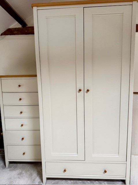 A lovely M&S Hastings double wardrobe, cream colour. The wardrobe has been dismantled in order to get it downstairs and unfortunately there are no assembly instructions, but it’s fairly straightforward for a proficient DIYer!