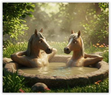 And we also have a picture taken secretly at a training facility just outside Empingham following an arduous swim in the swollen River Chater by Equine Enchantress and her hapless stablemate Cunning Fox