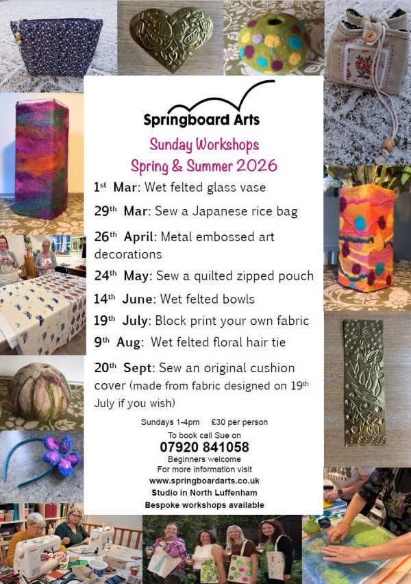 Treat you or yours to a lovely afternoon of creativity whilst supporting our local artist studio – Springboard Arts.
